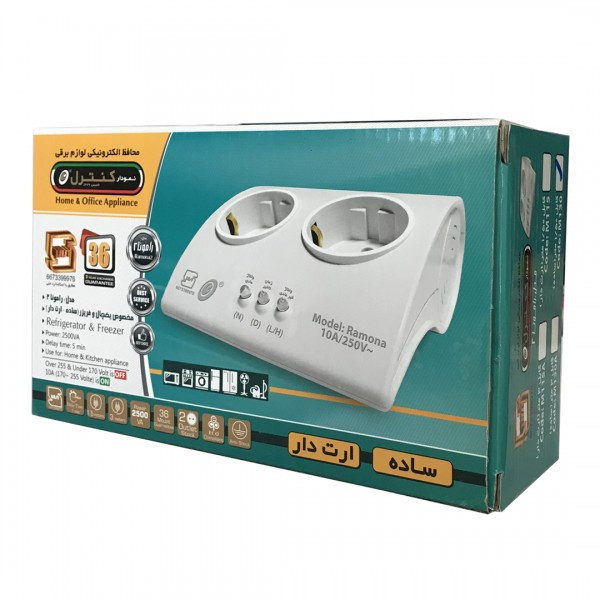 محافظ ولتاژ ۲ خانه یخچالی بدون ارت نمودار کنترل با کابل ۱.۵ متری مدل رامونا